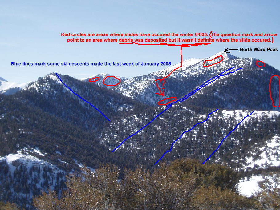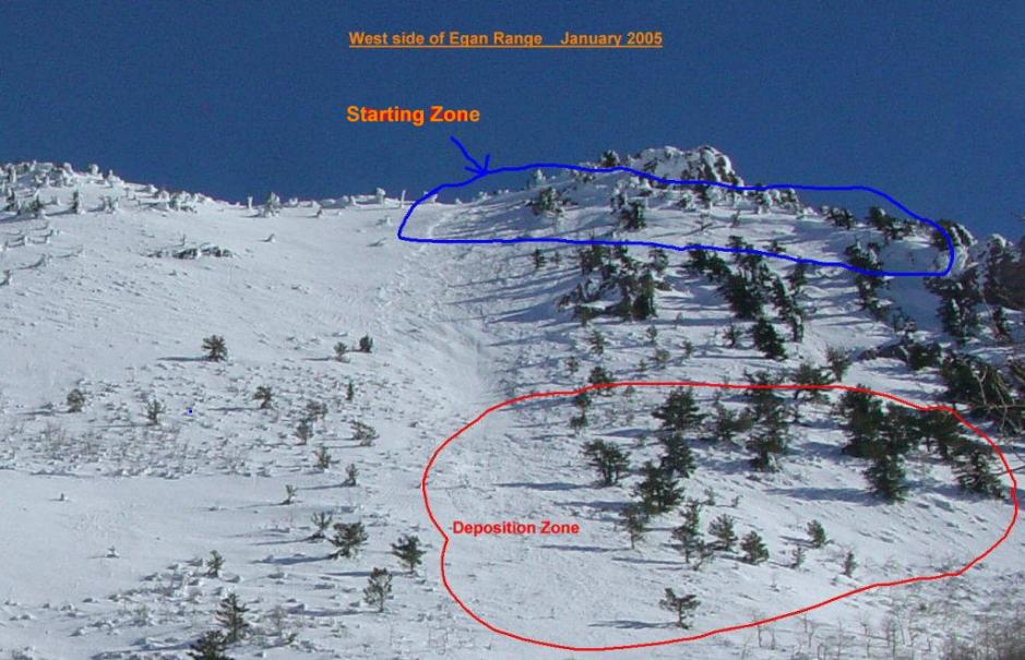 The elevation of the Egan Range crest in this location is approximately 10,3000 feet. The western side typically gets hammered by the prevailing winds. We have had many days of strong south west winds this season, during and immediately following the significant snowfalls in December. This slope has enough of a north west aspect to collect the snow deposited by these winds. This coupled with the likely wind scoured snow surface layer from the November storms provided prime conditions for this natural slide when the January warming trend occurred.