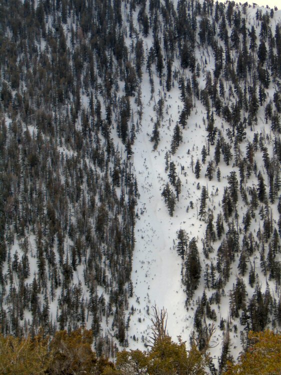 It was almost like spring the third weekend of January 2005 but by mid-week winter was sneaking back in, well sort of. Warm temps brought drizzle to the valley floors so I decided I best get off the valley floor. I headed for the Egan crest via Murray Summit Pass. Even though you get up on a pass driving you still have to travel 5 miles to make it up above the 10,000 foot level. The good thing is that it's 3,000 feet of all down hill at the end of the day. I had hoped to make it further than I did but the cloud cover kept me off the high point of the main ridge. Instead of zero visibility on the summit I opted for turns off several tree covered peaks in an area I refer to as Blue Grouse Peaks. Every time I'm on these peaks I find Blue Grouse hence the name. On this day I didn't actually see any grouse for photo opportunities but I did see their tracks. The conditions were re-frozen corn on an east face, a creamy 4 inches of soft snow in the trees on the same face, and actual powder on a north face, to top it off there was actually corn on a northwest face at at the 9,000 foot level. Overall it was one of my favorite solo days of the season as I skied lines I've never skied and I was on skis for 8 hours straight with a half hour lunch break. A long day at the office. Solo skiing is sometimes best for me as I forget to slow down, sufferfests don't seem so bad if there is no one there to let you know that you are suffering. |