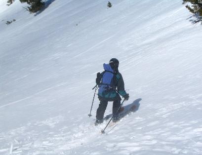 | Here's a little video clip of me turning the new Voile Insanes down Dog Leg. |
