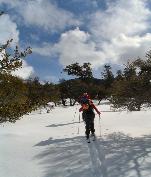 Dan suggested a slope in the Timber Creek drainage that we had discussed in previous conversations. Seemed like a good plan to me especially since the skin up started right from where we usually park at the Horse Camp versus the traditional Nevada approaches of a mile or more that we are so accustomed to. On this note I should mention that it has been very nice over the last year or so to have a few more people around Ely to discuss ski tour ideas with. Really helps to break out of the rut of skiing the same things over and over. It takes me back to when we first lived here and I was trying something new virtually every day I went out. I had skied the slope we had our eye on a couple times in the past but it had been at least 2 winters, maybe more, since I had set a ski on it. After the awesome day we had skiing up there I have to wonder why I haven't gone up there more often. From the very start of our tour we were on good soft snow and our confidence was building, as we skinned upward, that the mostly western facing slope we were intending to ski was going to be good. Within an hour and 45 minute we were at the top of the slope at just over 10,000 feet.