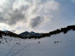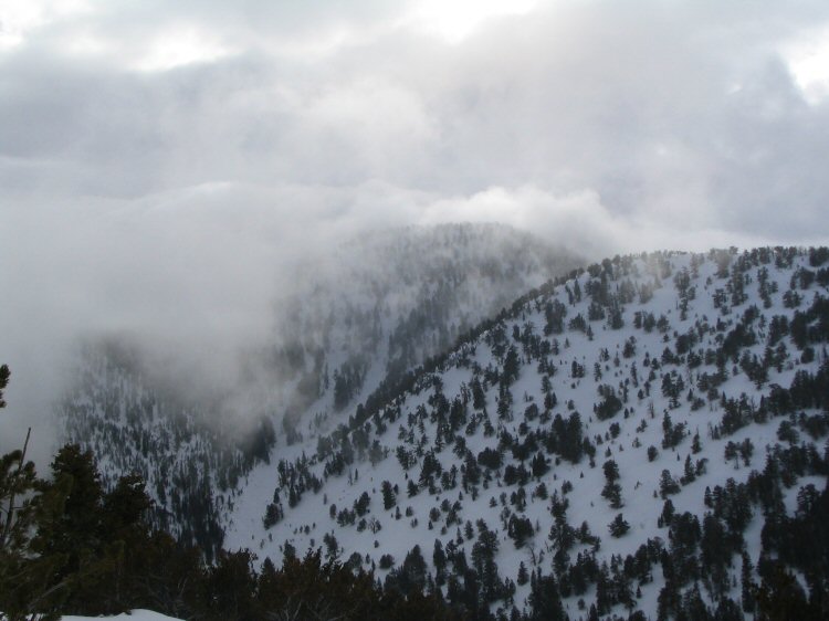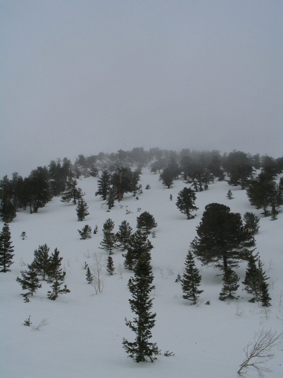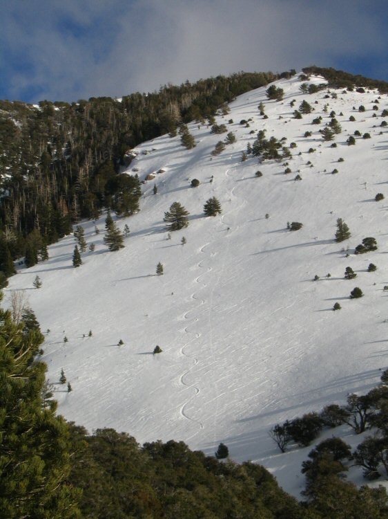 | The ridge I made a couple of laps on. A good 1,000 feet of turns in open pines is well worth the effort it took to get there. |