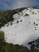 | One of the descents starting above 10,000 feet, hard to leave tracks in hard snow |