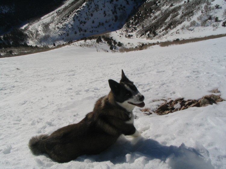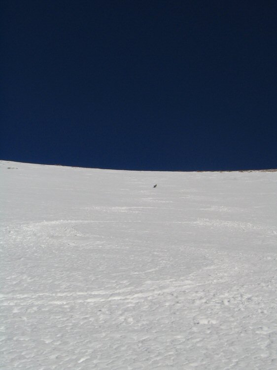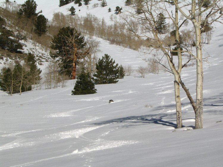 The lower portion of the slope was so good we took each ski line to the valley floor.
