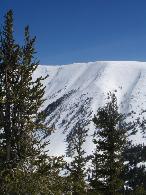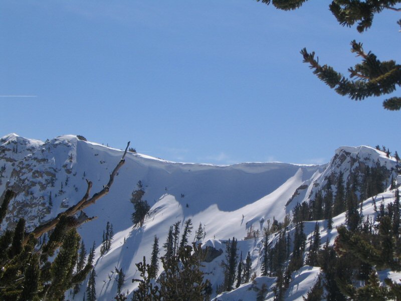 A view of Miiler gulch cornice one, a possible descent route we were considering.